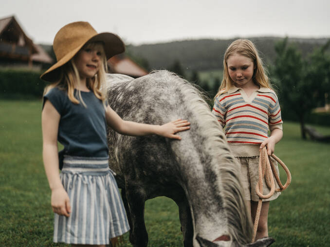 Kinder bekommen am Reiterhof des Hotel Muhr in der Steiermark meist nicht genug von Minipferden, Haflingern und Co. Die kleinen Gäste können mit Ohla, Monamie und Queeni tierische Freundschaften schließen.